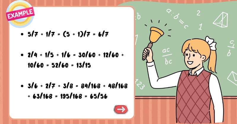Ketika dua pecahan memiliki penyebut yang sama, langkah penjumlahannya sangat sederhana. Mama hanya perlu menjumlahkan pembilang, sementara penyebutnya tetap. Misalnya: