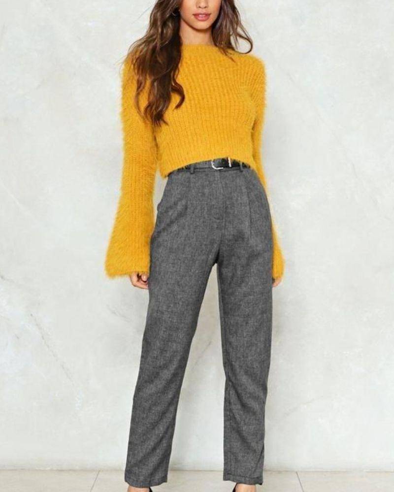 Kalau anak remaja mama suka dengan tampilan yang menyala, warna kuning mustard bisa jadi perpaduan celana abu-abu yang sesuai untuknya.