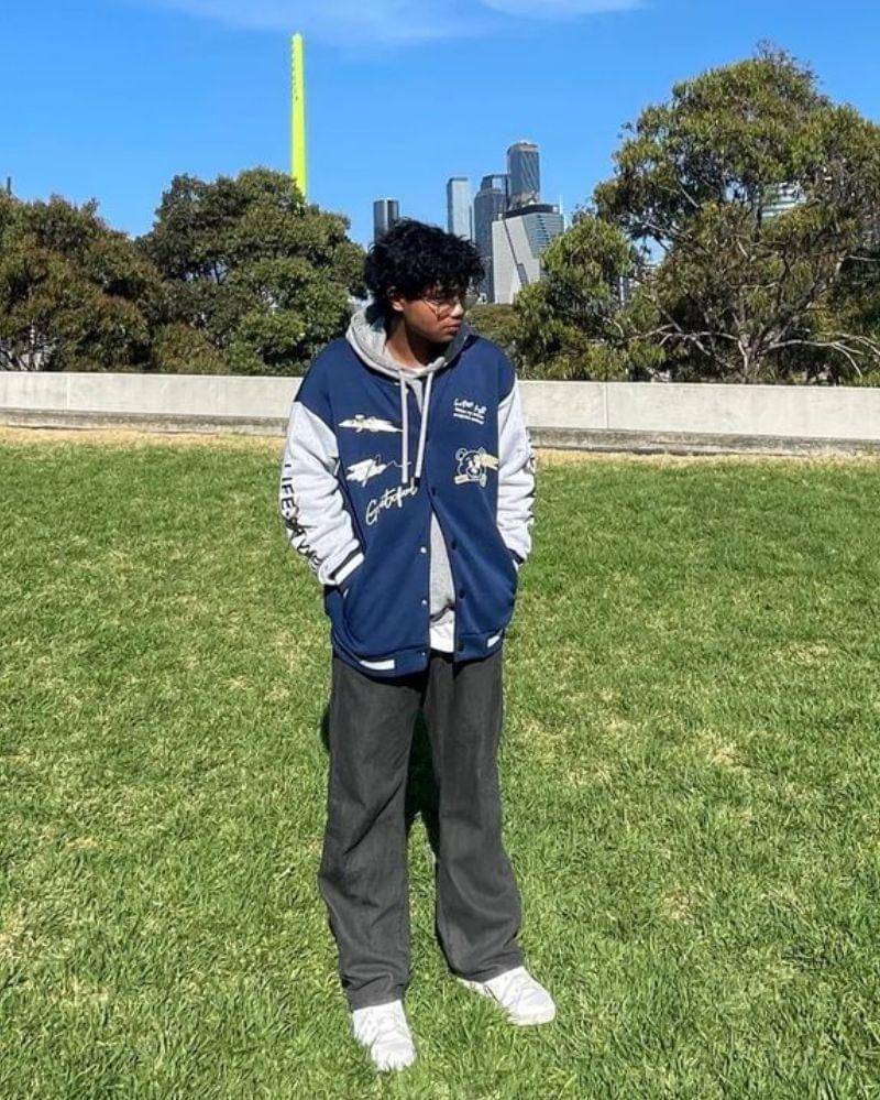 Agar padupadan celana abu-abu dengan atasan atasan hitam lebih bold, anak remaja mama bisa menambahkan aksesori seperti jaket kulit.