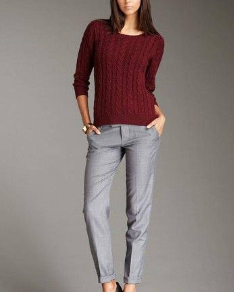 Celana abu-abu juga cocok dengan atasan merah marun. Biasanya perpaduan warna ini banyak digunakan para remaja untuk perayaan Natal nih, Ma.