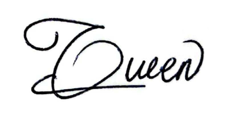 Tanda tangan yang terdiri dari huruf Q yang sederhana dan tidak terlalu rumit. Huruf Q dapat dibuat dengan ukuran yang lebih besar atau kecil.