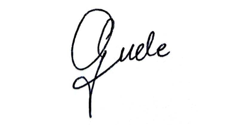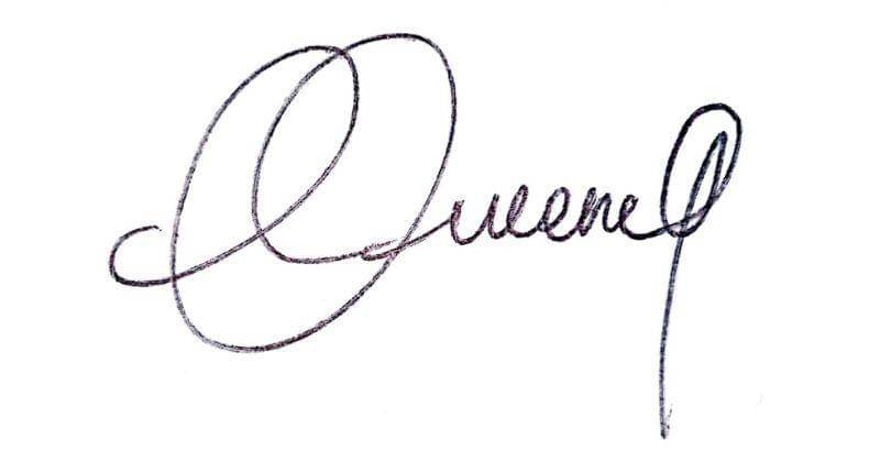 Tanda tangan ini menggunakan huruf Q kapital sebagai inisial nama. Huruf Q kapital memiliki bentuk yang unik, yaitu menyerupai huruf "c" dengan ekor yang memanjang ke atas.