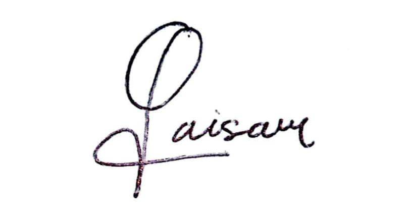 Bentuk tanda tangan yang sederhana dan tidak terlalu rumit. Tanda tangan ini digambar dengan satu garis, tanpa tambahan hiasan atau simbol.