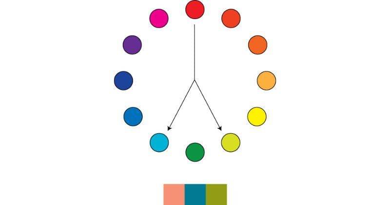 Misalnya, warna utama biru, maka warna pendampingnya adalah kuning-oranye dan merah-oranye. Kombinasi ini memberikan kontras yang lebih lembut dibandingkan warna komplementer.