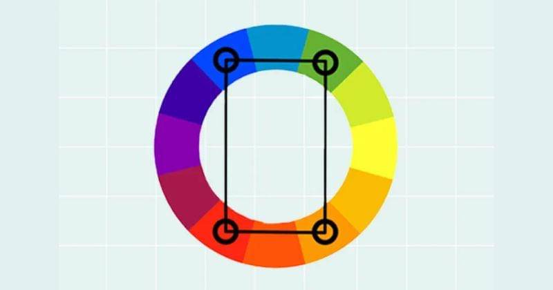 Skema warna tetradik adalah yang paling beragam karena menggunakan dua pasang warna komplementer. Misalnya, warna merah dan hijau, lalu biru dan oranye.