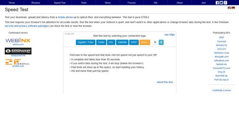 DSLReports Speed Test adalah situs web yang memungkinkan pengguna untuk menguji kecepatan internet mereka secara gratis dan mudah.