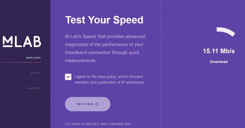 M-Lab's Internet Speed Test website adalah situs web yang memungkinkan remaja untuk menguji dan mengukur kecepatan internet mereka secara gratis.