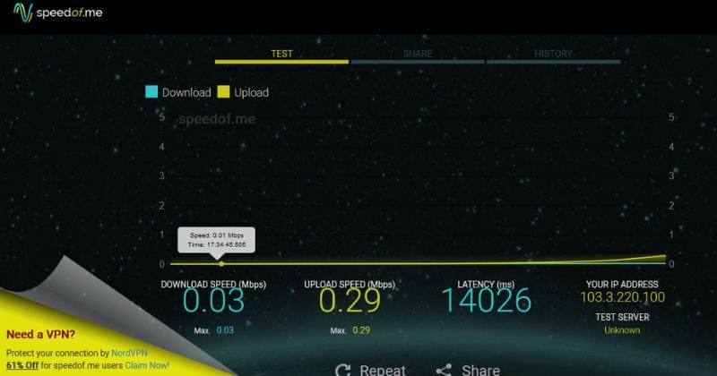Hasil tes SpeedOf.Me ditampilkan dalam grafik yang mudah dipahami, dan pengguna dapat melihat performa internet mereka secara real-time.