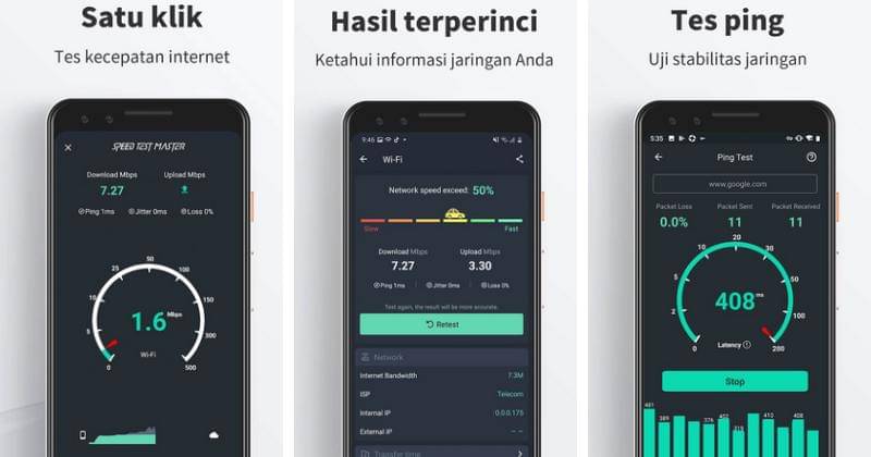 Dengan Speedtest by Ookla, pengguna dapat mengetahui seberapa cepat kecepatan download, upload, dan ping mereka.