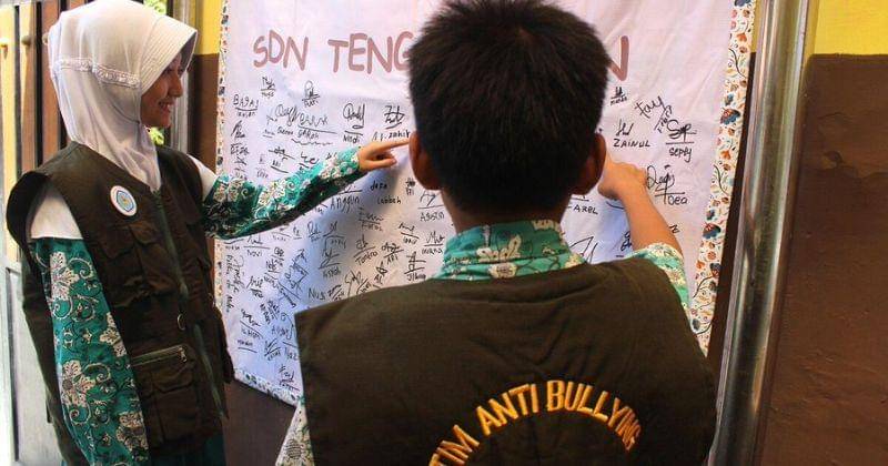 Kebanyakan kasus perundungan pada anak-anak di sekolah biasanya akan berakhir damai secara kekeluargaan tanpa memberikan jalan keluar. Tak ingin hanya menerima keadaan begitu saja, sejumlah siswa di SD Negeri Tenggulunan, Sidoarjo, ini justru memilih bangkit untuk membendung perundungan.