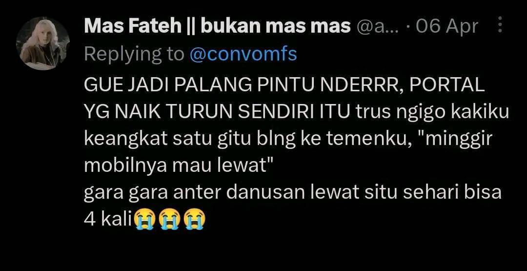 Dalam mimpi yang seru ini, bayangkan menjadi palang pintu yang menjadi pusat perhatian. Saat mobil hendak lewat, mengigau dan kaki terangkat satu seolah-olah membuka portal, menciptakan momen lucu dan unik. Pasti ketawa banget lihat temannya begini