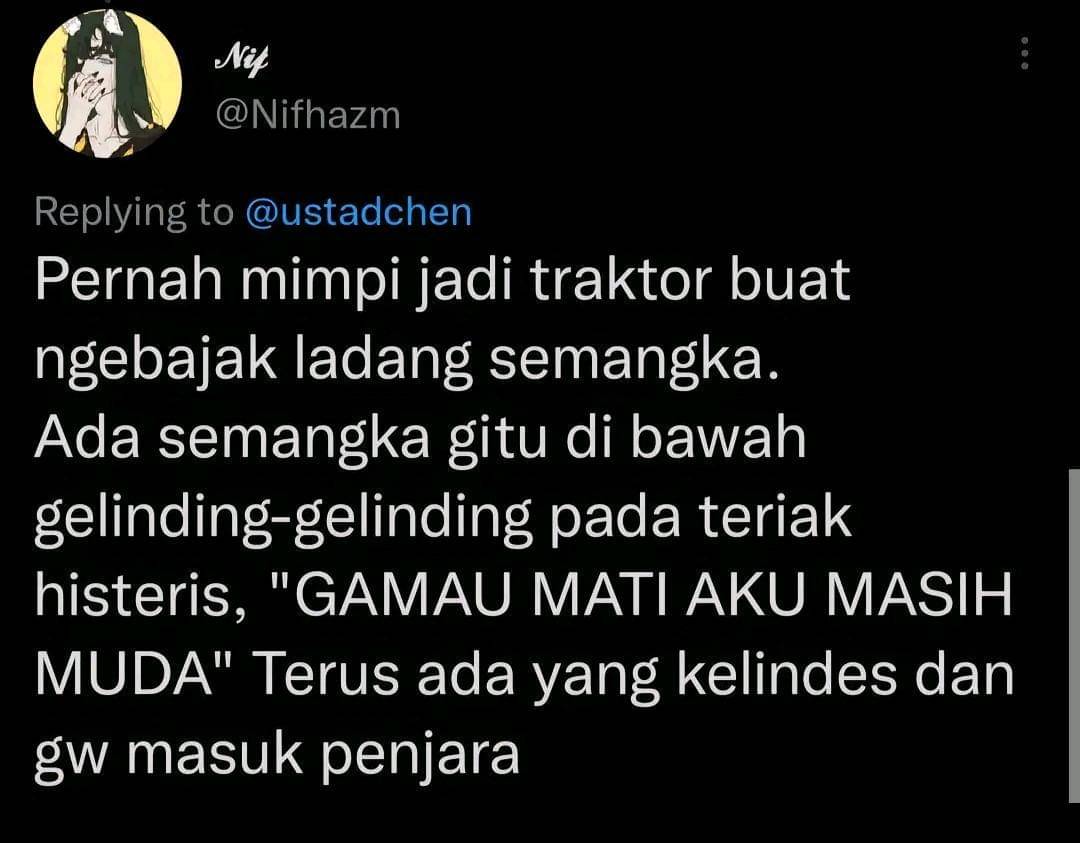 Mimpi tentang menjadi traktor yang membajak ladang semangka menciptakan gambaran yang kreatif dan lucu. Melakukan usaha keras yang membajak ladang semangka juga bisa dihadirkan dengan unsur kekreatifan dan keajaiban yang serupa seperti cerita-cerita sebelumnya.