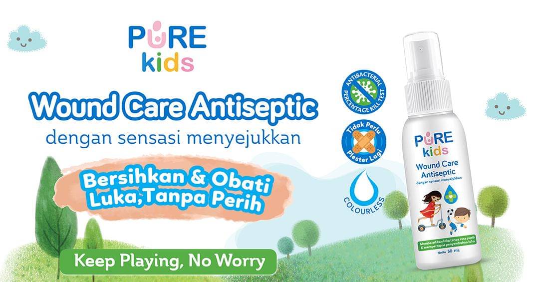 PureKids Wound Care Antiseptic sebagai obat luka anak tidak perih yang membersihkan dan mengobati luka tanpa perih. (WEB)