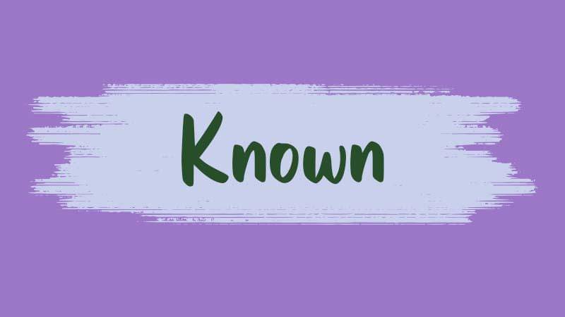 Known adalah bentuk perubahan ketiga dari kata kerja know. Kata kerja known ini termasuk irregular verb dalam bentuk verb 3 atau kata kerja ketiga yang biasa dipakai pada past perfect tense, present perfect tense, dan future perfect tense dalam bahasa Inggris.