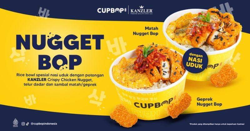 Kolaborasi antara Kanzler x Cupbop & Chatime ini menghadirkan dua jenis menu dengan kategori yang berbeda. Yang pertama ada kategori nasi dan menu camilan. Varian menu yang akan hadir adalah Geprek Nugget Bop dan Matah Nugget Bop. Keduanya menghadirkan sensasi crispy dari Kanzler Crispy Chicken Nugget yang dipadukan dengan rasa pedas dari sambal geprek dan kesegaran sambal matah khas Cupbop.