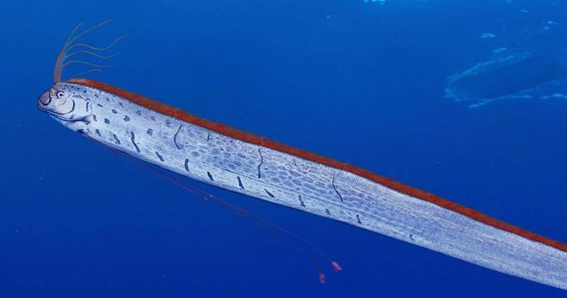 List ini akan kita buka dengan ikan unik dari laut dalam yang bernama oarfish (Regalecus glesne). Seekor ikan besar dengan tubuh yang panjang, saking panjangnya mereka tergolong sebagai iklan bertulang paling panjang.
