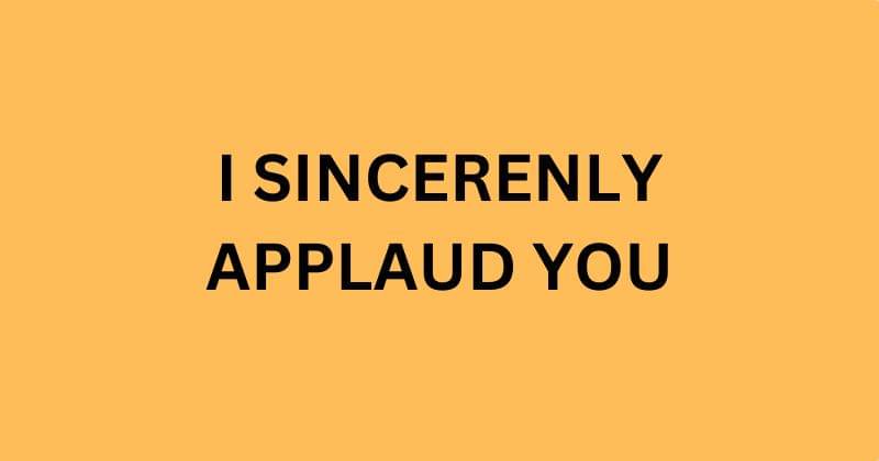 Ketika kamu mengatakan i sincerely applaud you kepada seseorang, kamu menyatakan bahwa kamu sungguh-sungguh mengakui pencapaian, upaya, atau tindakan mereka dengan penuh kekaguman.