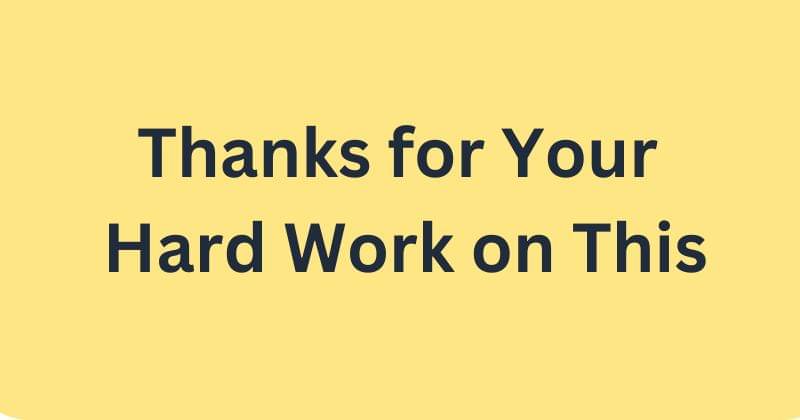 Thanks for your hard work on this adalah cara yang lebih spesifik dan menghargai upaya keras yang telah dilakukan oleh seseorang dalam suatu tugas atau proyek tertentu. Ungkapan ini menunjukkan bahwa seseorang telah meluangkan waktu dan energi atas keberhasilan suatu proyek.