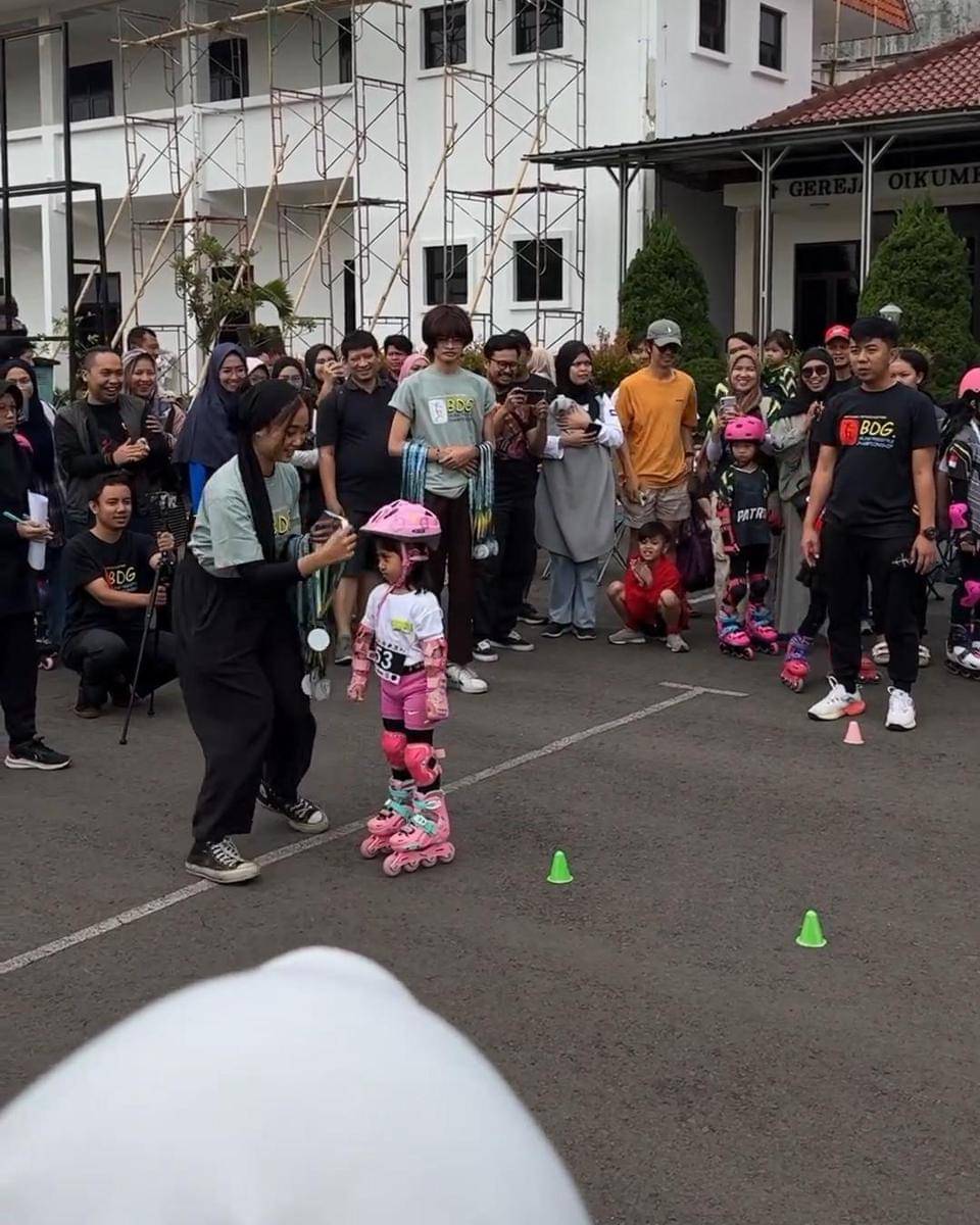 Aksi Seru Gempi, Xabiru, dan Chava saat Lomba Sepatu Roda di Bandung