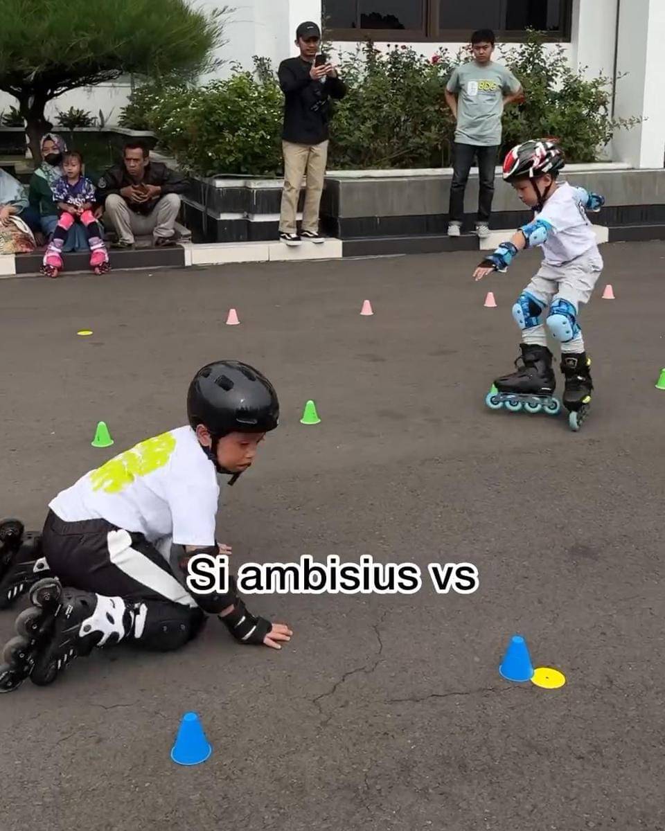 Tak disangka, luncuran cepat yang diberikan Xabiru sempat membuatnya terjatuh di arena kompetisi. Kendati begitu, hal ini tidak membuat anak berusia 6 tersebut menyerah begitu saja.