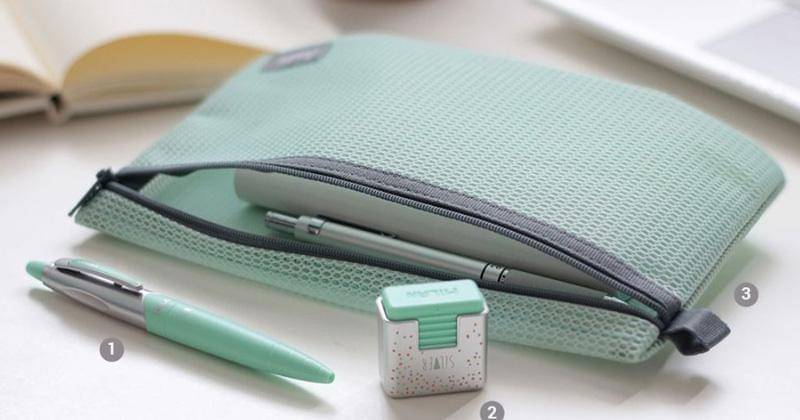Tempat pensil ini memiliki tampilan minimalis dengan warna yang pilihan warna yang bagus. Beberapa warna di antaranya adalah Grey, Sky Blue, Musky Pink, dan Cool Aqua.