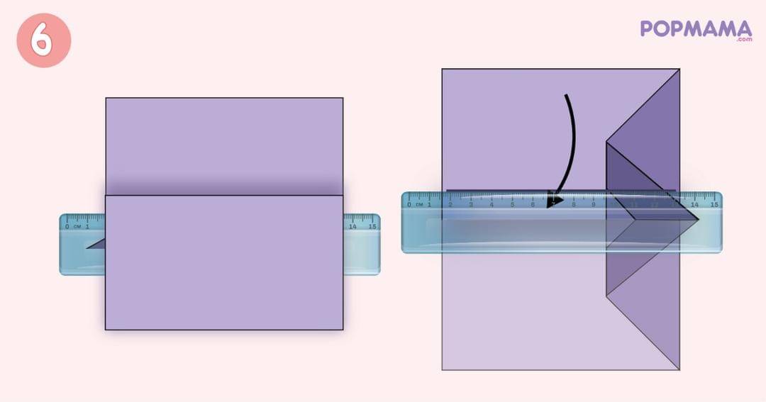 Kali ini, kita akan segera membuat sayap pesawat. Agar lipatan yang dibuat lebih rapi dan mudah, baiknya kita menggunakan penggaris.