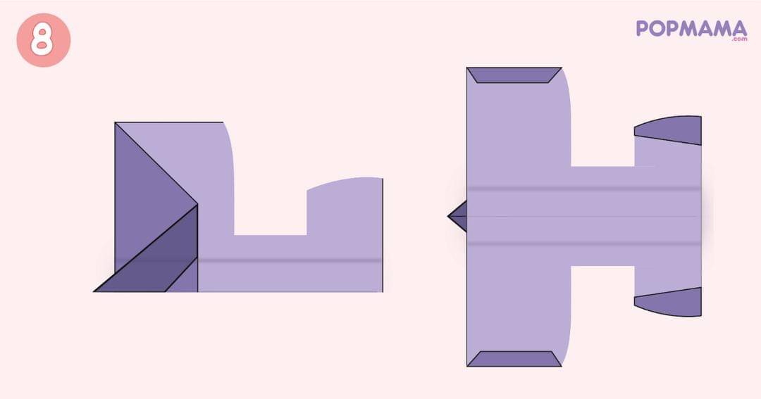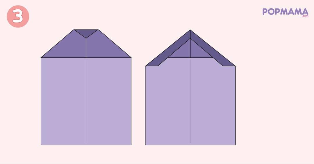 Setelah tahap ini, kamu akan mendapatkan bentuk kertas yang sekilas terlihat seperti gambar rumah.
