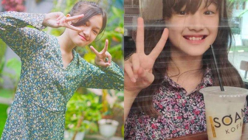Sebenarnya Elea juga bisa sangat ekspresif saat berfoto. Buktinya dalam foto ini Elea tersenyum lepas sambil memasang dua tangan peace di kanan dan kiri wajahnya.