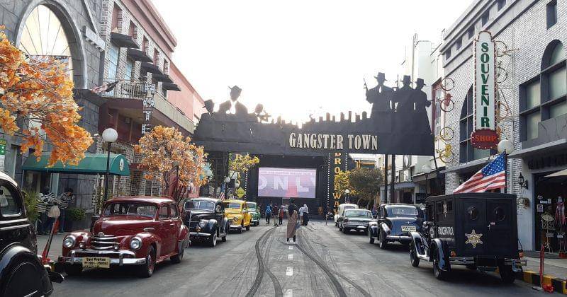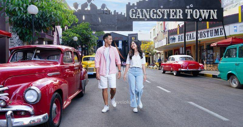 - Zona Gangster: Ikonik dengan koleksi mobil klasik dan bangunan bergaya retro Amerika pada abad ke-20.