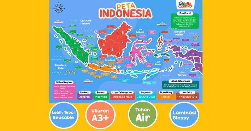 Tak hanya mainan, poster edukatif bergambar seperti peta dunia juga bisa menjadi hadiah yang Mama berikan di momen Hari Anak Nasional 2024. Di sini, Mama bisa memberikannya poster bergambar peta Indonesia, peta Australia, maupun peta Eropa.