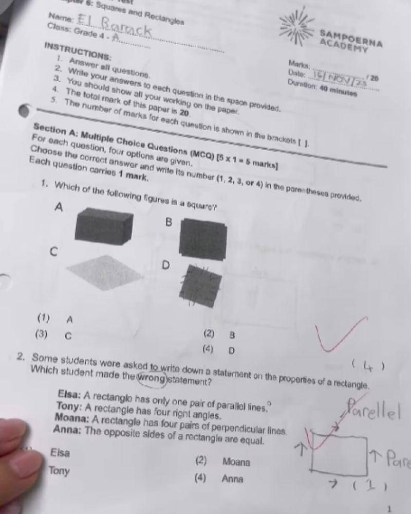 Melalui video tersebut, Mama dua orang anak itu memperlihatkan bagaimana hasil ulangan matematika putranya yang mendapatkan nilai sempurna atau 100.