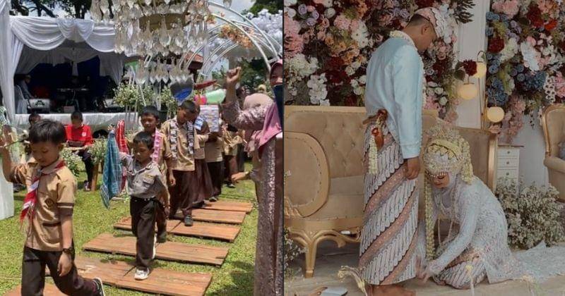 Seperti pada acara pernikahan seorang guru SD di Bogor ini. Di mana murid-muridnya datang dan turut meramaikan momen bahagia tersebut. Namun, yang unik adalah para murid-muridnya tersebut datang sambil membawa berbagai perabotan rumah tangga yang tentu membuatnya terkejut.