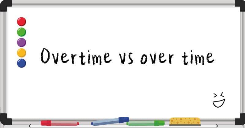 Overtime (tanpa spasi) merujuk pada waktu kerja tambahan yang melebihi jam kerja normal, sering kali berhubungan dengan pembayaran tambahan. Sedangkan over time (dengan spasi) mengacu pada sesuatu yang terjadi secara bertahap seiring waktu.