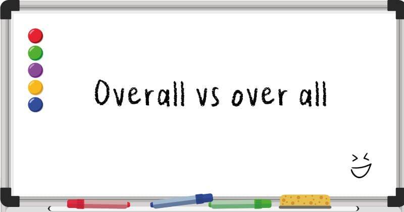 Overall (tanpa spasi) digunakan sebagai kata sifat yang berarti secara keseluruhan atau secara umum, sedangkan over all (dengan spasi) digunakan untuk menggambarkan sesuatu yang berada di atas segalanya secara fisik.