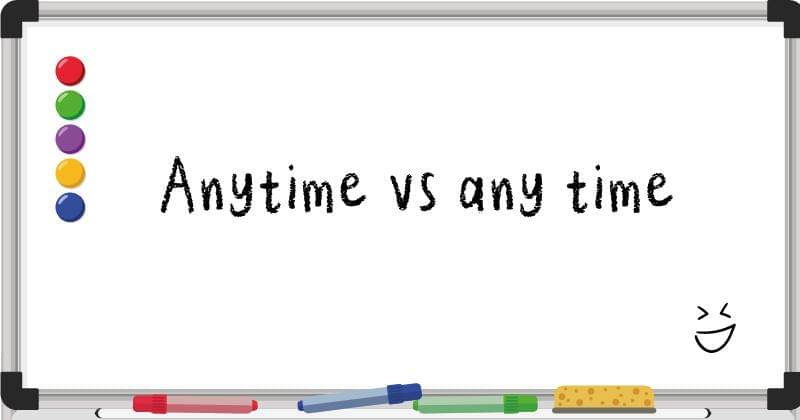 Anytime (tanpa spasi) adalah kata keterangan yang berarti kapan saja dan biasanya digunakan dalam konteks informal. Sementara itu, any time (dengan spasi) lebih umum digunakan dalam konteks formal atau untuk merujuk pada waktu tertentu.