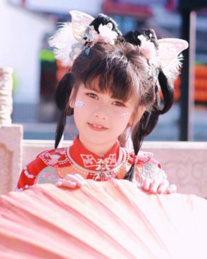 Sedangkan Nuxi tampil menggemaskan mengenakan gaun cheongsam berwarna merah yang lengkap dengan hiasan kepala berbentuk sayap kupu-kupu.