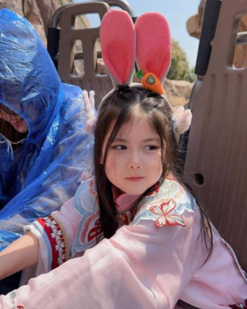Sebelumnya Nuxi juga pernah liburan ke Disneyland. Seperti anak-anak kebanyakan, Nuxi pergi ke Disneyland menggunakan kostum berwarna pink muda yang tampak seperti princess.