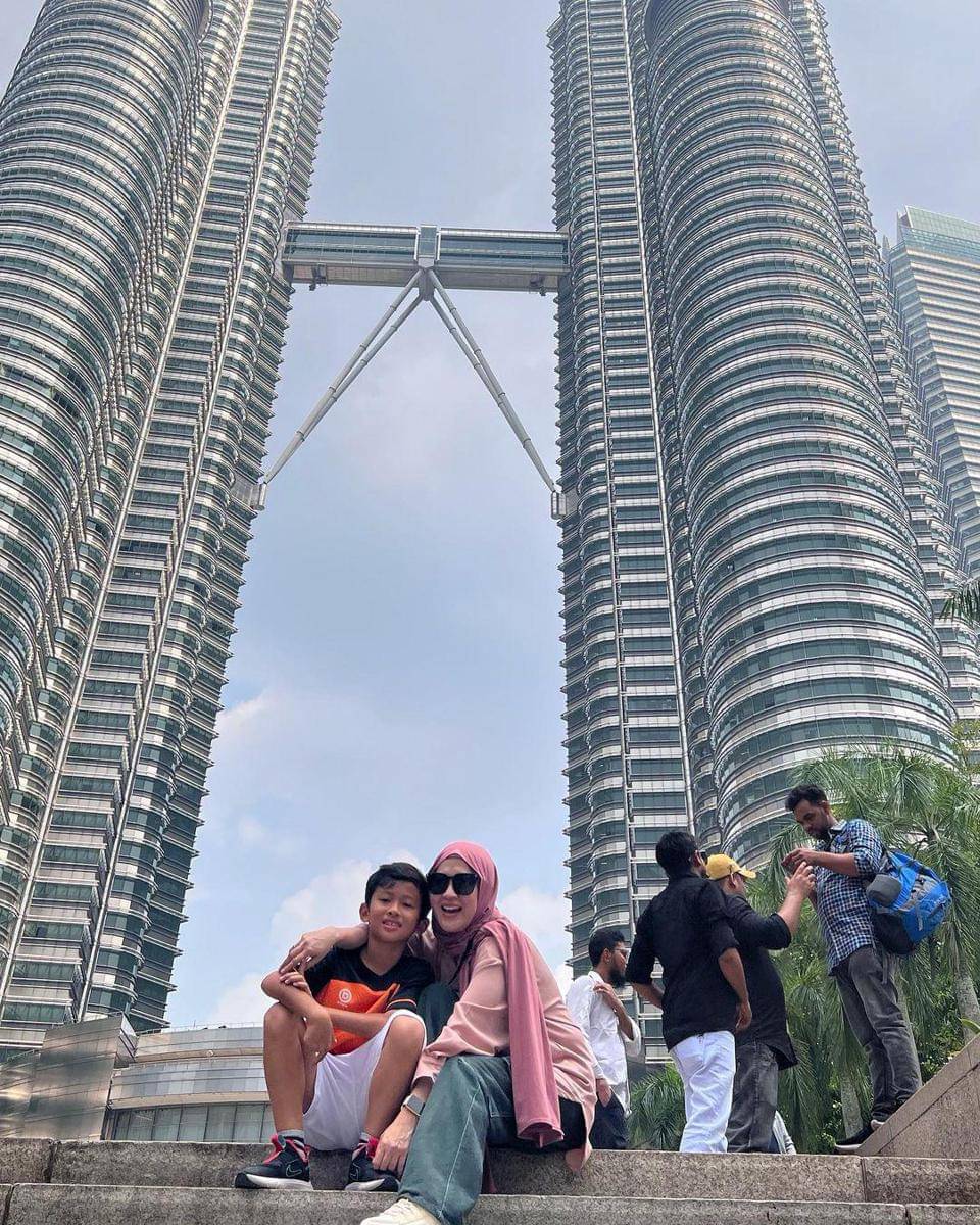 Pasangan Mama dan anak tersebut tampak begitu bahagia ketika berpose dengan latar belakang Menara Kembar Petronas.