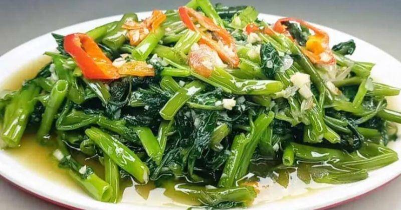 - Rebus air dalam panci hingga mendidih. Masukkan kangkung ke dalam air mendidih selama sekitar 1-2 menit. Angkat dan tiriskan.