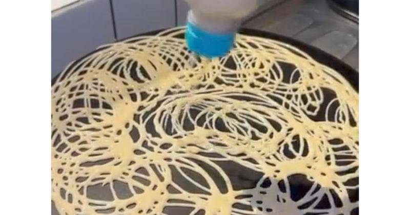 - Panaskan wajan, lalu tuang adonannya. Bentuk menjadi sarang laba-laba sesuai selera.