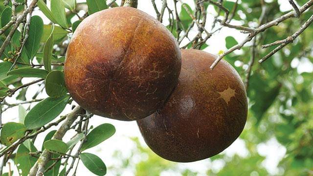 Ciri khas buah Xylocarpus adalah garis melingkar di bagian tengah sedikit ke bawah.