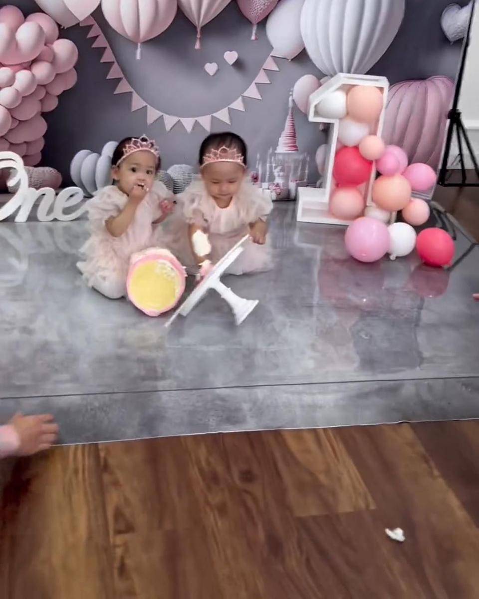 9 Foto Keseruan Ultah Anak Kembar Anisa Rahma, Makan Kue Belepotan