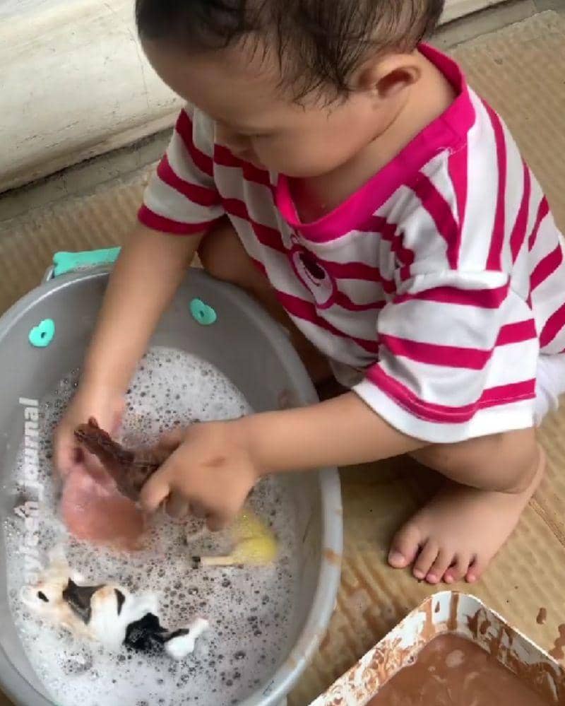 Jika memberikan mainan hewan yang hanya dimainkan begitu saja, saatnya ubah cara yang lebih menyenangkan dan bermanfaat dengan mencuci hewan mainan sebagai sensory play.