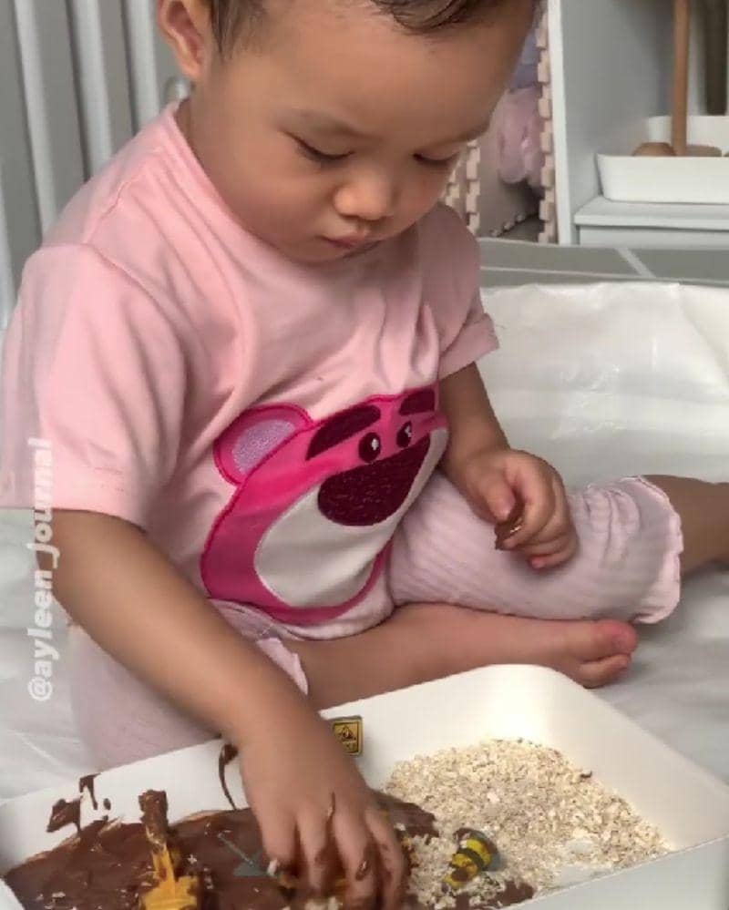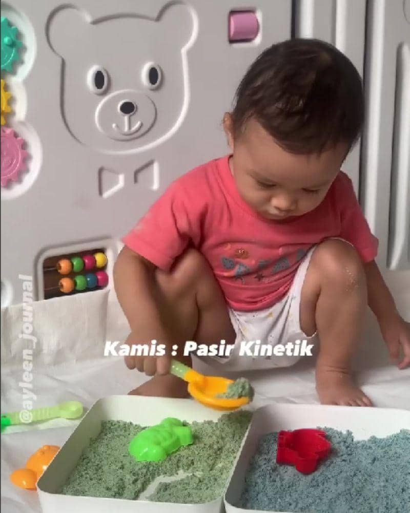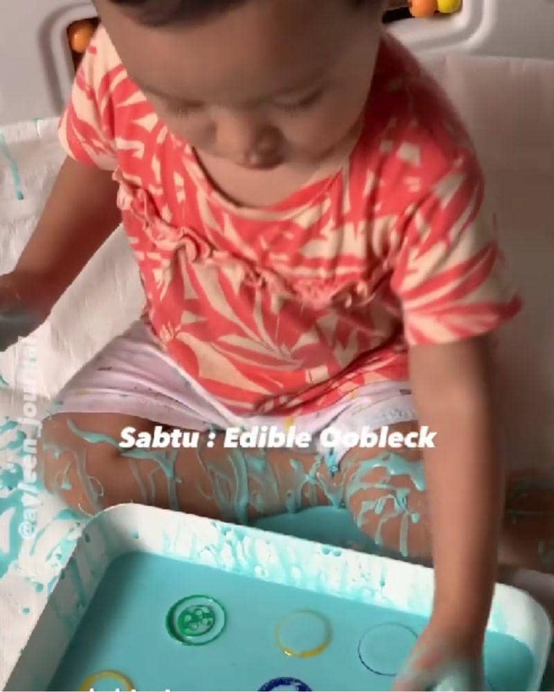 Jika usianya masih di bawah 1 tahun, Mama bisa memulai perkenalan sensory play pada si Kecil selama 10 menit dalam satu sesi permainannya. Nah, di usia Ayleen yang sudah memasuki 20 bulan atau 1 tahun lebih, sang Mama mulai menambahkan durasinya yaitu maksimal 30 menit dalam satu kali main.