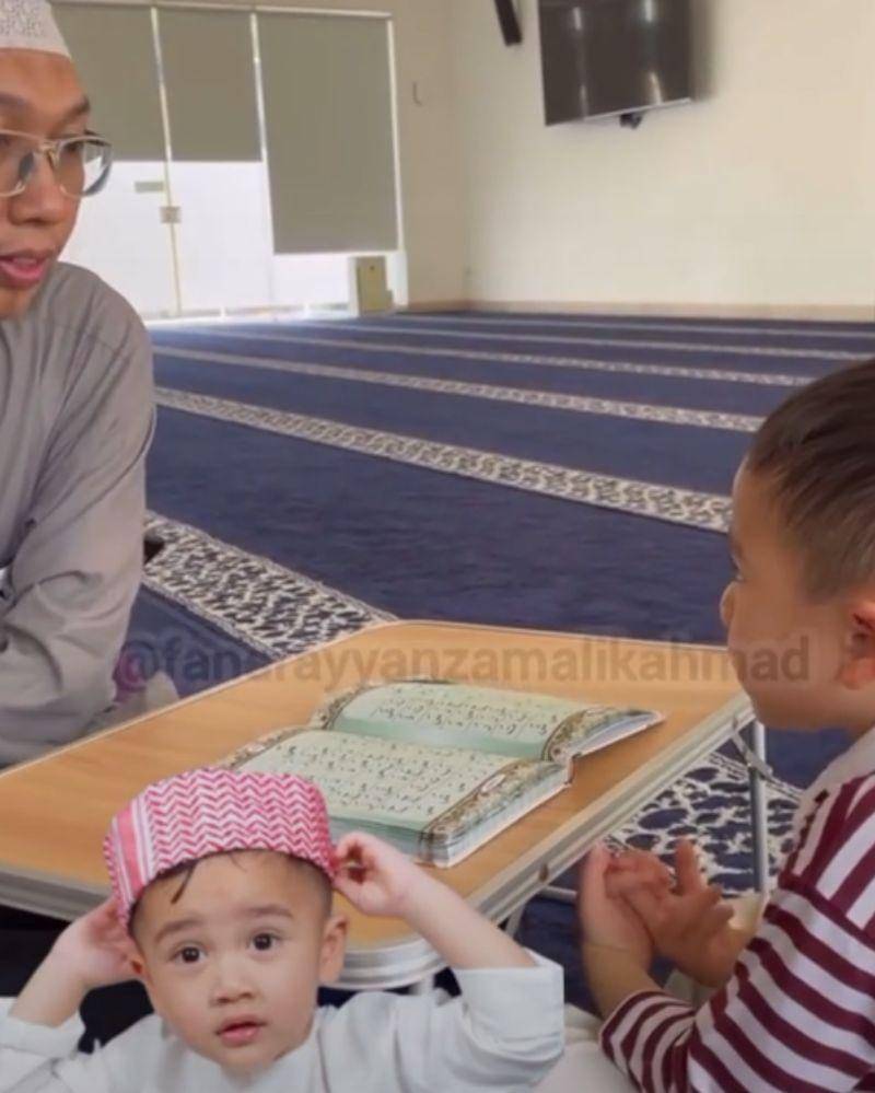 "Om Olik ngerokok," ucap Rayyanza mengadu kepada Pak Ustaz yang langsung mendapat wejangan agar tidak mengikutinya saat besar nanti.