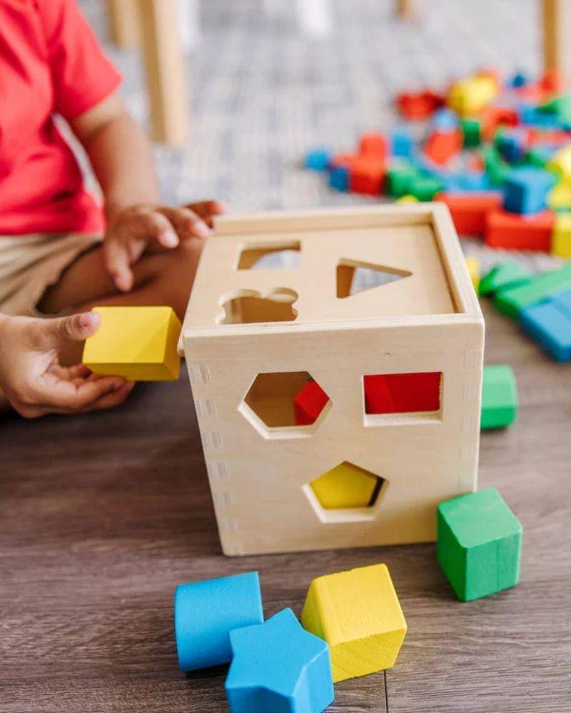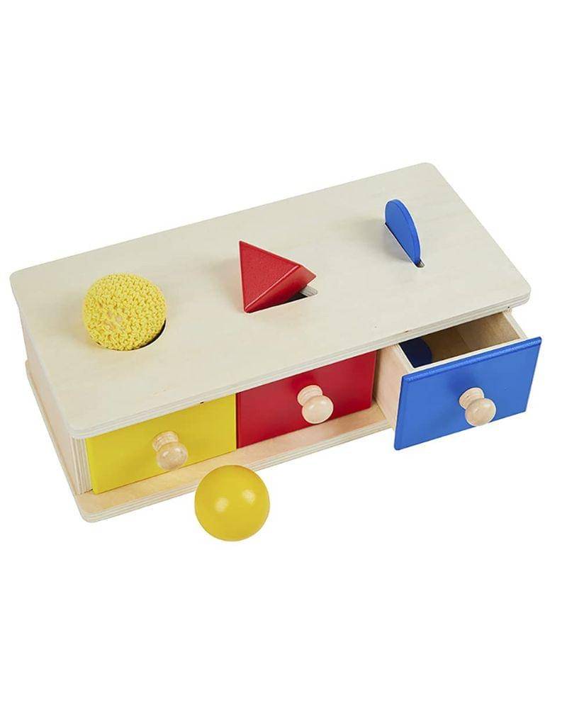 Mirip dengan permainan balok, permainan imbucare box montessori juga bisa melatih motorik dan imajinasi anak, karena anak diminta untuk mencocokan ragam bentuk yang ada supaya dapat masuk ke dalam kotak yang telah disediakan.