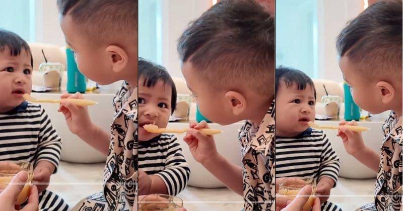 Momen Menggemaskan Rayyanza saat Suapin Lily Makan