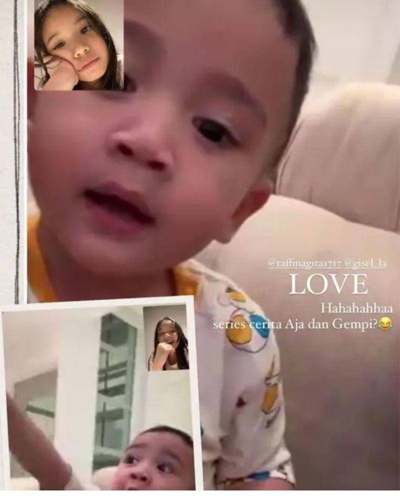 Momen video call tersebut kemudian dibagikan oleh Mama Gisel melalui Instagram Story miliknya berupa tangkapan layar, di mana terlihat putrinya terlihat tengah berbincang dengan adik dari teman sepermainannya Rafathar, yakni Rayyanza atau Cipung.