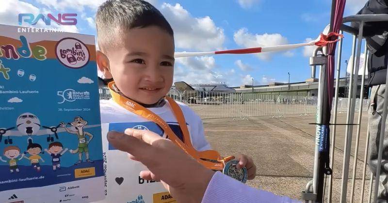 Tak kalah dari sang Papa, Raffi Ahmad, Rayyanza rupanya juga berhasil membuat bangga banyak orang dengan mengikuti ajang lari marathon khusus balita di kota Berlin, Jerman.