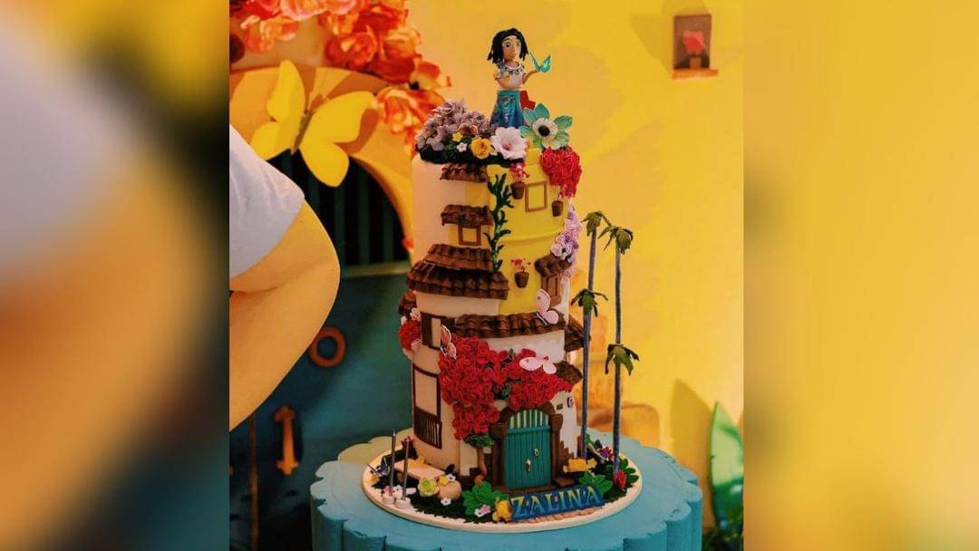 2. Tak hanya dekorasi, kue ulang tahun Zalina pun dibuat seperti rumah keluarga Madrigal di Elcanto